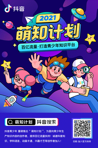 抖音此次發起『萌知計劃』,將在原有泛知識內容基礎上,進一步精細化扶持青少年文化教育內容,全年投入百億流量,為創作者提供從賬號入駐、內容生產到商業變現、品牌打造的一站式服務。