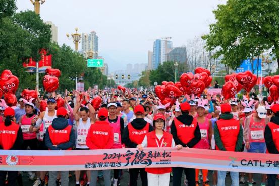 12月8日7:30,由福建省體育局、寧德市人民政府主辦,寧德市體育局、寧德市旅發集團有限公司、蕉城區人民政府、東僑經濟技術開發區管委會承辦的『驍遙增混電池·2024寧德馬拉松』在寧德市會展中心鳴槍開賽。